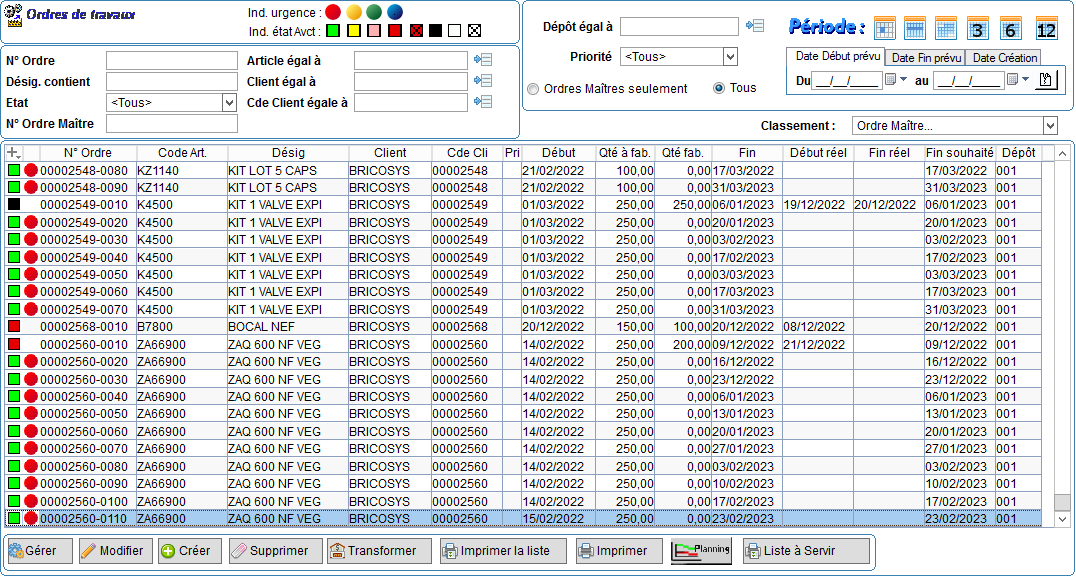 Si un OF est urgent vous pouvez lui donner une des deux priorités : URGENT ou PRIORITAIRE.