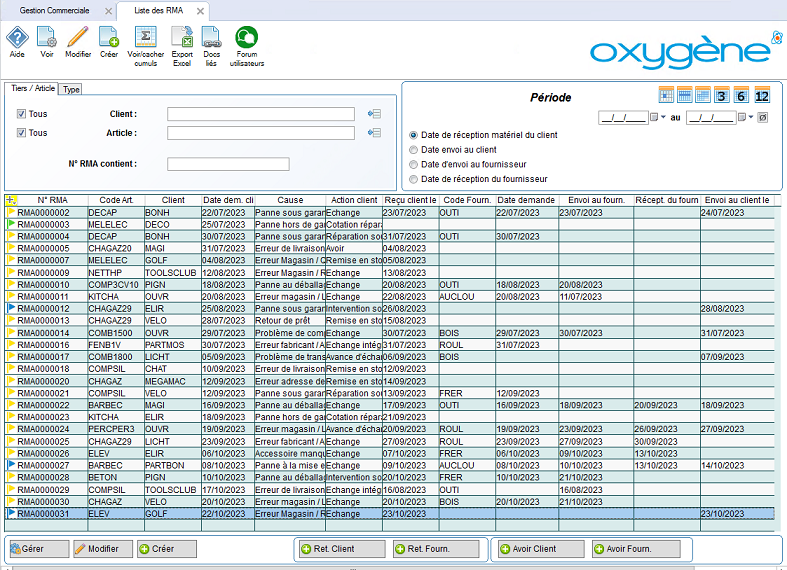 Avec le composant RMA vous pouvez gérer les actions suivantes :
