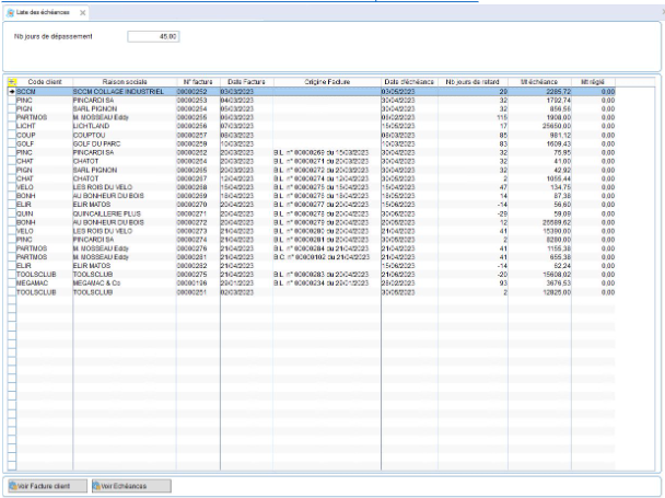 Ventes, Alerte sur dates d'échéances des factures clients dépassées