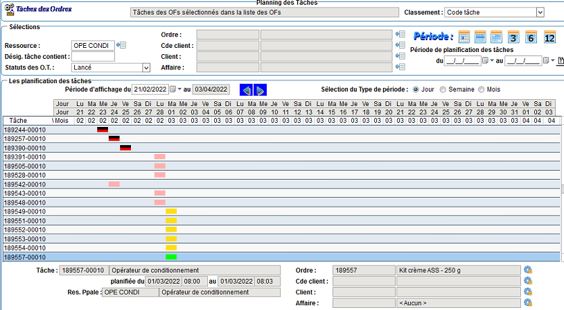 - Les tâches sont jalonnées lors de la création ou de la modification des OFs.